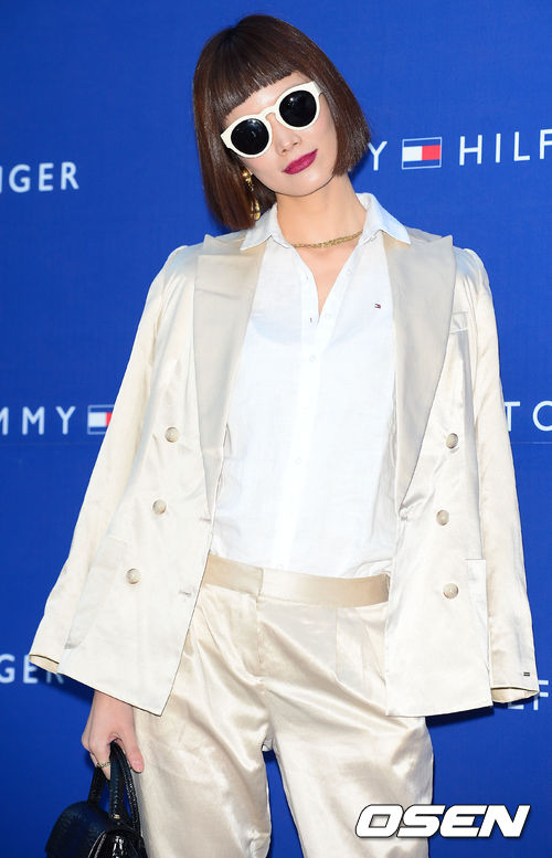 23일 오후 서울 강남구 신사동 타미 힐피거(Tommy Hilfiger) 가로수길 플래그쉽 스토어에서 열린 타미 힐피거 가로수길 플래그쉽 스토어 오픈 포토월 행사, 모델 송경아가 포토월에서 포즈를 취하고 있다.