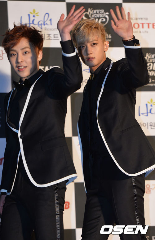 그룹 엑소 시우민과 타오가 포토타임을 갖고 있다.
