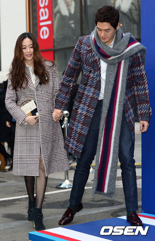 23일 오후 서울 강남구 신사동 타미 힐피거(Tommy Hilfiger) 가로수길 플래그쉽 스토어에서 열린 타미 힐피거 가로수길 플래그쉽 스토어 오픈 포토월 행사, 유지태 김효진 부부가 포토월로 향하고 있다.