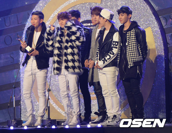 신인상을 수상한 방탄소년단이 소감을 전하고 있다.