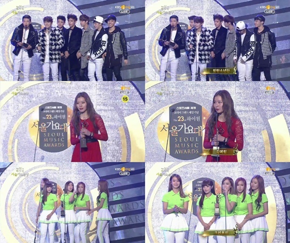 그룹 방탄소년단과 걸그룹 크레용팝, 그리고 가수 김예림이 '하이원 서울가요대상' 신인상을 수상했다.