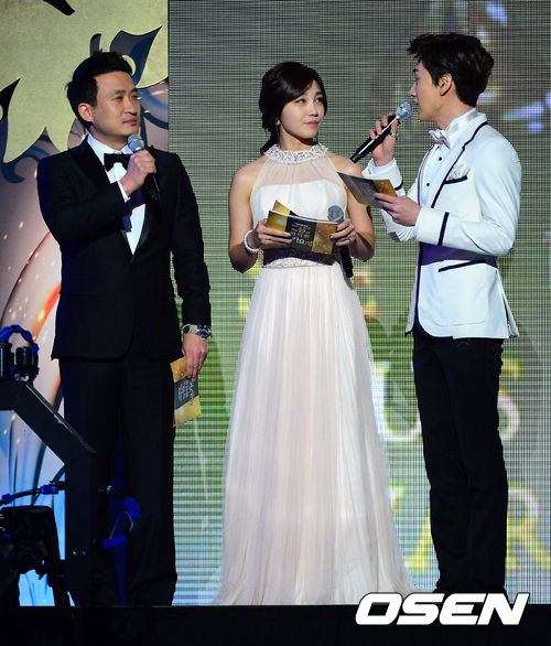 사회를 맡은 개그맨 서경석, 에이핑크 정은지, 슈퍼주니어 은혁이 진행을 하고 있다.