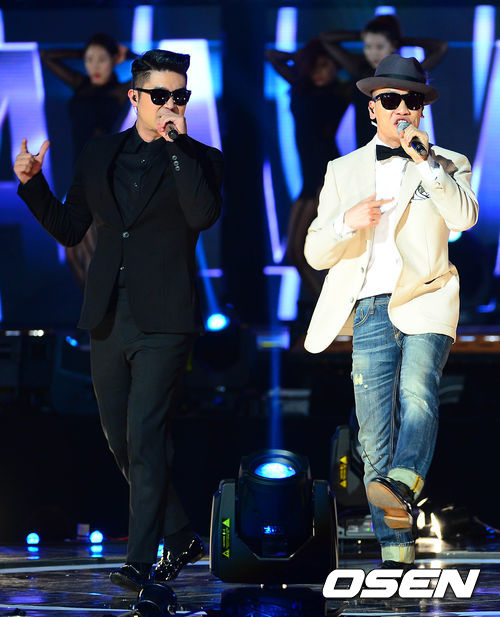 힙합부문상을 수상한 그룹 다이나믹 듀오가 화려한 무대를 펼치고 있다.