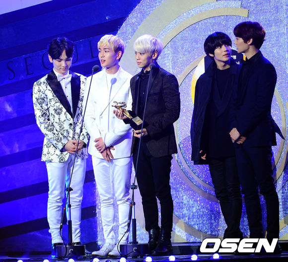 한류특별상을 수상한 그룹 샤이니가 수상소감을 말하고 있다.