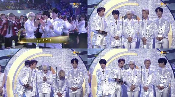샤이니는 “이 전까지 상 받으면서 제 기분에 너무 취해서 정말 고마우신 분들 얘기를 못했는데, 일단 샤이니월드 정말 감사드린다”고 말했다. 이어, 소속사 대표, 직원, 매니저, 스타일리스트 등 힘을 보태준 모든 사람들에게 감사 인사를 돌렸다.
