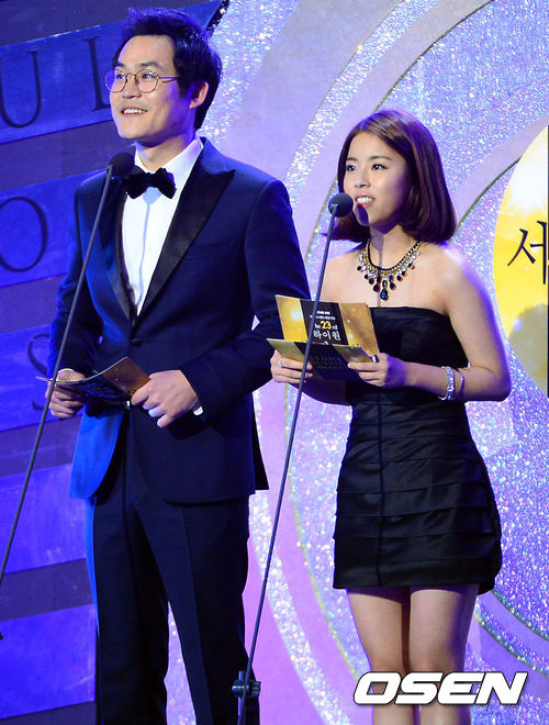 시상자로 나선 배우 김성균과 타이니지 도희가 수상자를 발표하고 있다.