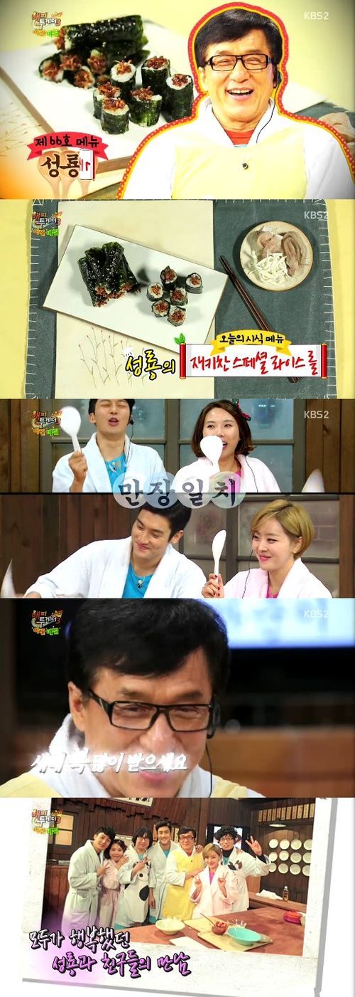 ‘해피투게더3’ 월드스타 성룡이 만든 ‘재키찬 스페셜 라이스 롤’, 일명 기찬 김밥이 만장일치로 야간매점 메뉴 등극에 성공했다.