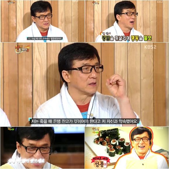 17,18살 때 한국에서 활동한 바 있기에 한국에 대한 애정이 남다른 성룡. 그는 “그때 저는 굉장히 가난했다. 일주일에 두 번 밥을 먹을 정도였는데 그 마저도 잡곡밥이었다. 너무 춥고 배가 고팠다”라고 과거를 회상했다. 이어 “그때 제가 제주도에 있을 때였는데 허겁지겁 밥을 먹으니 가게 사장님이 국과 흰쌀밥을 줬다. 나는 그게 정말 고마웠다”라며 40년 전 받은 호의를 생생하게 설명했다.