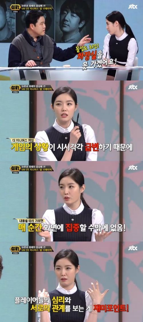 김새롬은 분석을 위해 ‘더 지니어스2’를 VOD로 시청하고 나왔다고 밝혔다. 이에 김구라가 “의무감에 봤는데 보고 난 느낌은 어떠냐”고 묻자 김새롬은 “화장실을 못가겠더라”라며 “한 번 놓치며 나머지를 다 놓치니까 집중할 수밖에 없다”고 말했다.