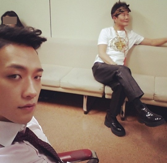 가수 비가 태진아와 KBS 2TV '뮤직뱅크' 대기실에서 촬영한 사진을 공개했다.