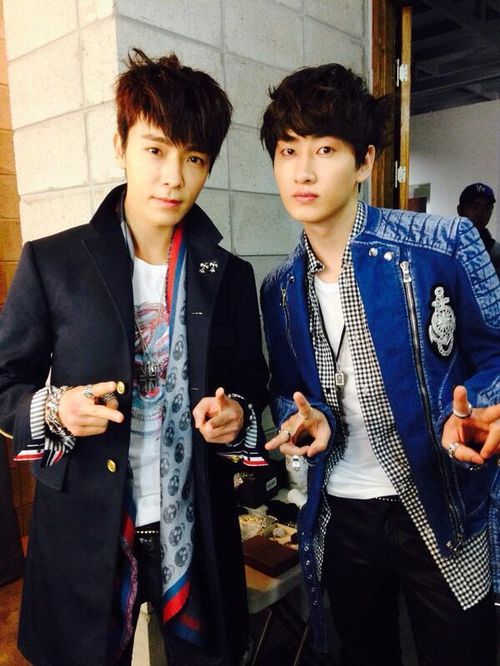 공개된 사진 속에는 동해와 은혁이 두 손으로 브이(V)를 그리며 카메라를 응시하고 있는 모습이 담겨있다. 두 사람의 세련된 패션으로 패셔니스타의 면모를 보이고 있어 눈길을 끈다.