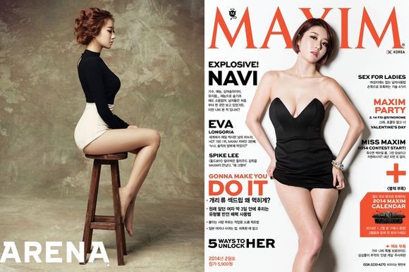 경리와 나비는 최근 각각 남성매거진 아레나 옴므 플러스와 맥심 코리아 2월호 화보 촬영을 했다. 두 사람은 각자의 장점이 돋보이는 의상과 포즈로 눈길을 끌었다.
