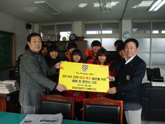 전남 드래곤즈(사장 박세연)가 여자축구 발전을 위해 광양지역 초,중,고 여자 축구팀에 4000만 원 상당의 축구 용품 및 육성금을 전달했다.