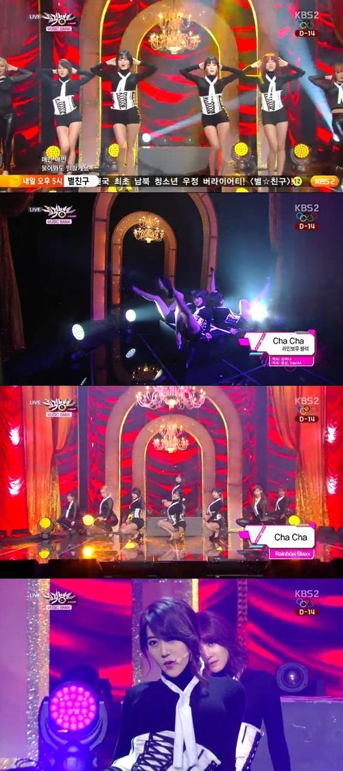 레인보우 블랙은 24일 오후 6시 30분 방송된 KBS 2TV '뮤직뱅크'에 출연해 곡 '차차'를 선보이며 섹시미를 어필했다.