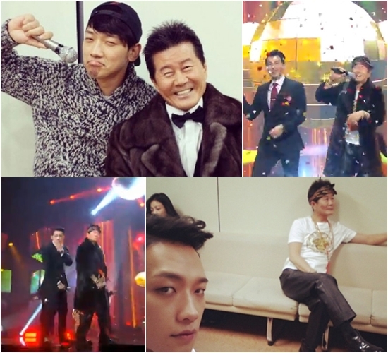 비는 23일 자신의 SNS를 통해 "연습시작. 이래도 되나. 다 죽었음. 기대하시라 두둥 비진아"라는 짧은 글과 함께 한 장의 인증샷을 공개했다. 공개된 사진에는 마이크를 들고 장난스러운 표정을 짓고 있는 비와 환하게 웃고 있는 태진아의 모습이 담겨 있다.