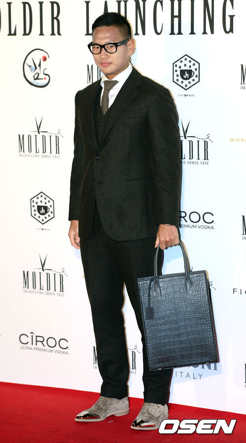 24일 오후 서울 신사동 션샤인호텔에서 진행된 가죽 가방 및 액세서리 브랜드 몰더 브랜드 론칭 기념파티에서 축구선수 정대세가 포즈를 취하고 있다.