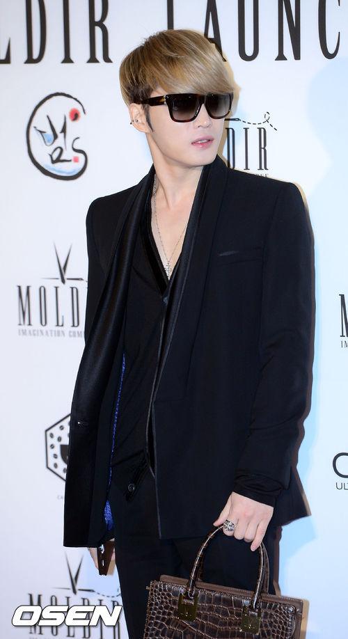 24일 오후 서울 신사동 션샤인호텔에서 진행된 가죽 가방 및 액세서리 브랜드 몰더 브랜드 론칭 기념파티에서 JYJ 김재중이 포즈를 취하고 있다.