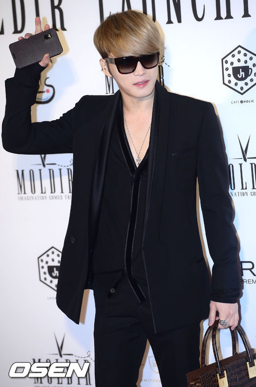 24일 오후 서울 신사동 션샤인호텔에서 진행된 가죽 가방 및 액세서리 브랜드 몰더 브랜드 론칭 기념파티에서 JYJ 김재중이 포즈를 취하고 있다.