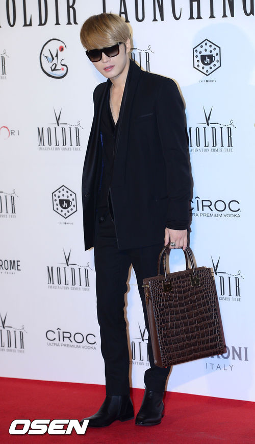 24일 오후 서울 신사동 션샤인호텔에서 진행된 가죽 가방 및 액세서리 브랜드 몰더 브랜드 론칭 기념파티에서 JYJ 김재중이 포즈를 취하고 있다.