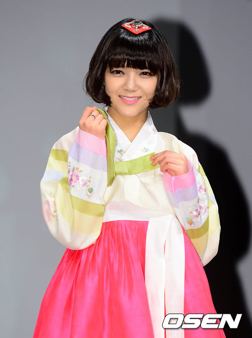 이날 AOA는 설 명절을 맞아 한복차림으로 참석해 '짧은치마' 무대 의상과 대조되는 한복을 입고 단아한 매력을 선보였다.