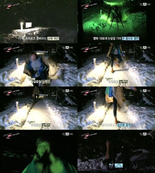 그러나 압권은 이승훈의 몸개그. 멤버들의 촛불이벤트를 상상하며 발랄하게 등장한 이승훈은 소복귀신의 등장에 빛의 속도로 뒷걸음질을 치며 악다구니를 썼다. 특히 눈을 집어들곤 귀신에게 뿌려대 웃음을 자아냈다.