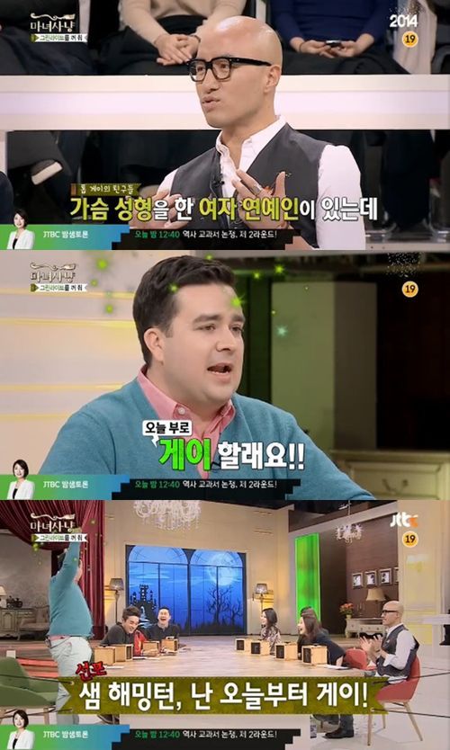 샘 해밍턴은 “난 오늘부터 게이할래”라며 “전 오늘부터 게이입니다”라고 큰 소리로 외쳐 웃음을 자아냈다.