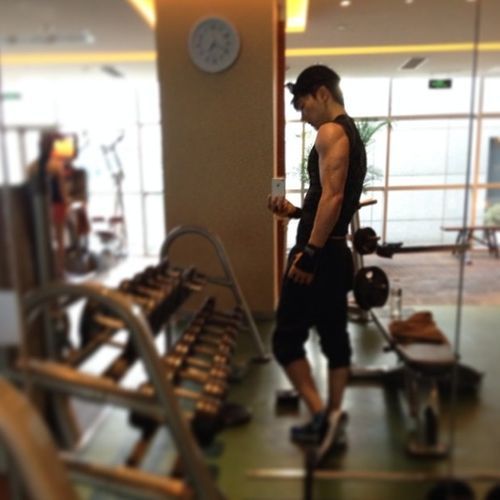 사진 속에서 장우혁은 헬스클럽에서 검은색 민소매 의상을 입고 운동 중에 팔근육을 과시하고 있다. 마치 조각 같이 탄탄한 팔근육이 눈길을 사로잡는다.