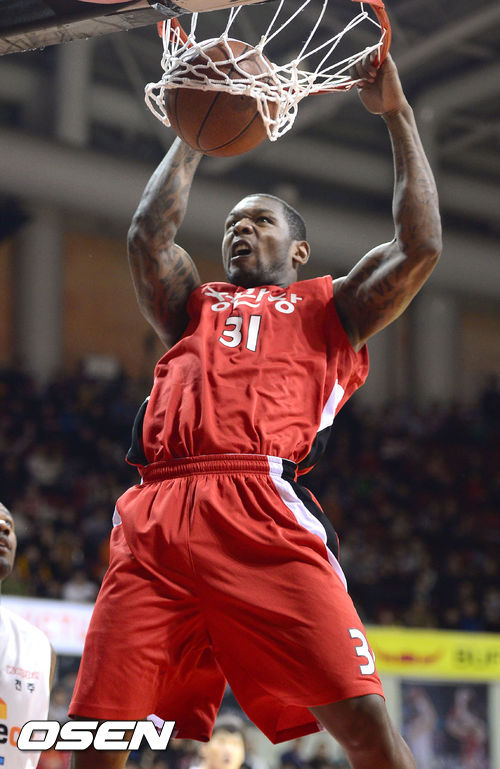 25일 경기 안양실내체육관서 열린 2013-2014 KB국민카드 프로농구 정규리그 안양 KGC와 전주 KCC의 경기 2쿼터 KGC 맥키네스가 덩크슛을 성공시키고 있다.
