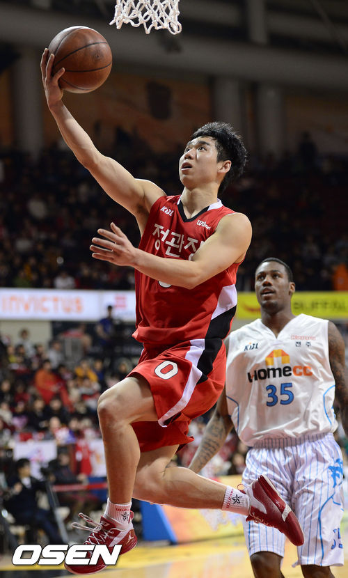 25일 경기 안양실내체육관서 열린 2013-2014 KB국민카드 프로농구 정규리그 안양 KGC와 전주 KCC의 경기 2쿼터 KGC 김윤태가 레이업슛을 성공시키고 있다
