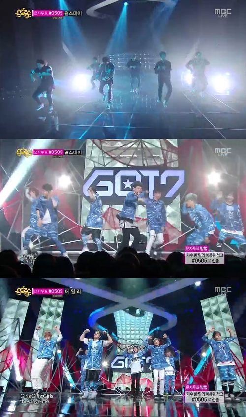 갓세븐은 25일 오후 3시 50분에 방송된 MBC '쇼! 음악중심'에서 ‘걸스 걸스 걸스(Girls Girls Girls)’무대를 선사했다.