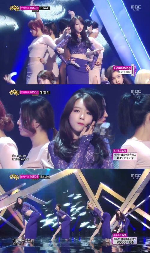 걸스데이는 25일 오후 3시 50분에 방송된 MBC '쇼! 음악중심'에서 '섬씽(Something)'의 무대를 선보였다.