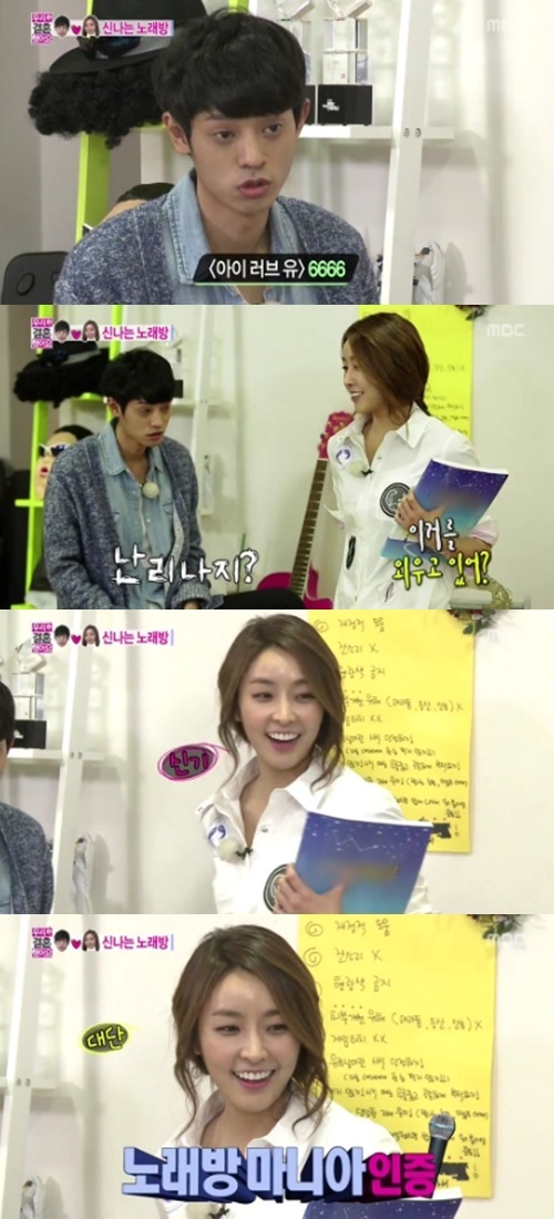 정준영은 25일 방송된 MBC 예능 프로그램 '우리 결혼했어요4'(이하 우결)에서 정유미가 선물한 노래방 기계를 보자마자 애창곡 번호를 읊어 눈길을 끌었다.