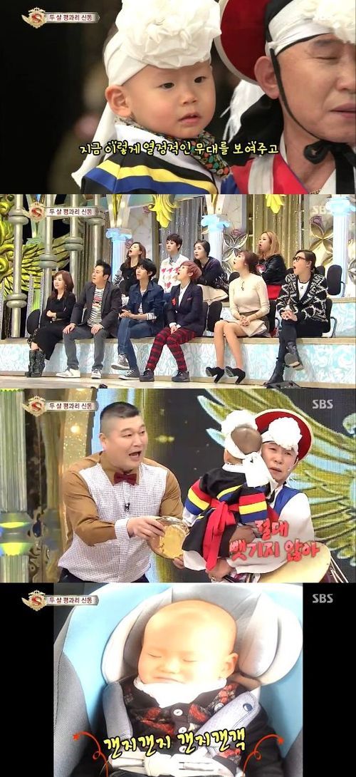 SBS 예능프로그램 '놀라운 대회 스타킹'에 2살의 꽹과리 신동이 등장했다.