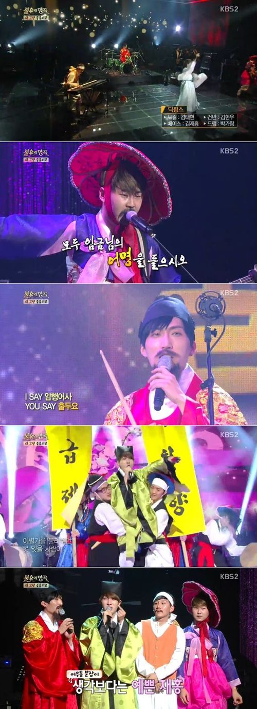 딕펑스는 25일 오후 고향을 테마로 특집으로 꾸며진 KBS 2TV '불후의 명곡-전설을 노래하다'(이하 '불후')에 출연해 '찔레꽃'을 특유의 밴드 스타일로 편곡해 선보였다.