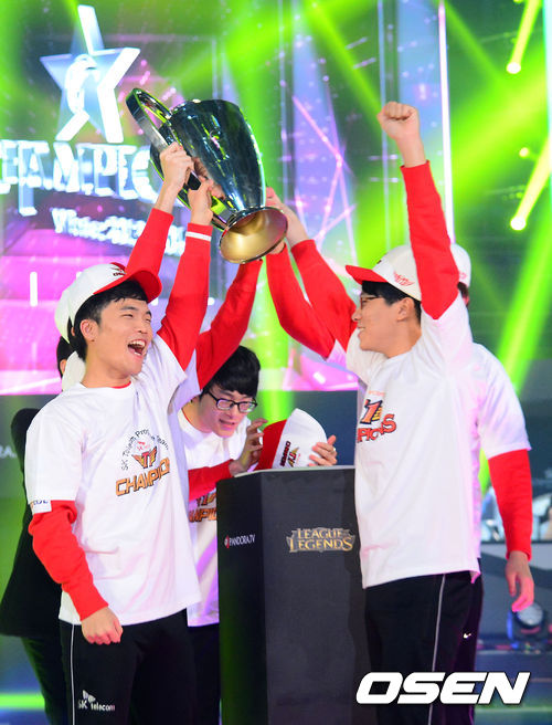 SK텔레콤 K는 25일 인천 삼산월드 체육관에서 열린 '판도라TV LOL챔피언스(이하 롤챔스)' 윈터 2013-2014시즌 삼성 오존과 결승전서 에이스 이상혁을 포함해 정언영 이정현 등 전선수가 고르게 실력을 발휘하면서 3-0 완승을 거뒀다.