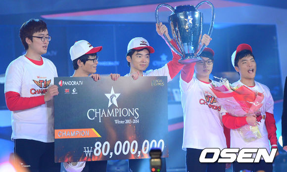 SK텔레콤 K는 25일 인천 삼산월드 체육관에서 열린 '판도라TV LOL챔피언스(이하 롤챔스)' 윈터 2013-2014시즌 삼성 오존과 결승전서 에이스 이상혁을 포함해 정언영 이정현 등 전선수가 고르게 실력을 발휘하면서 3-0 완승을 거뒀다.