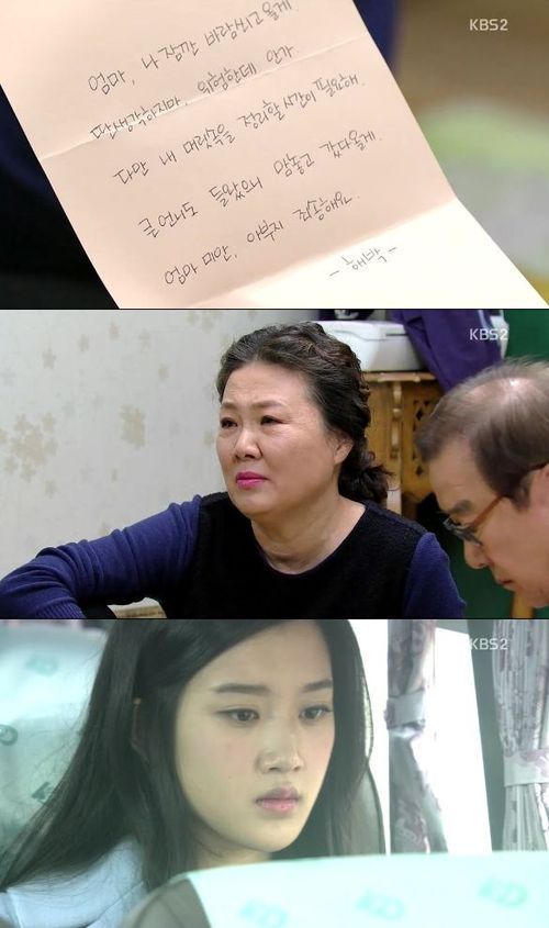이날 이앙금(김해숙 분)은 부엌에서 편지 하나를 발견했다. 그 편지는 해박이 쓴 것으로, '나 잠시 바람 쐬고 올게. 위험한 데 가는 것 아냐. 걱정하지 마'라는 글이 담겨 있었다.