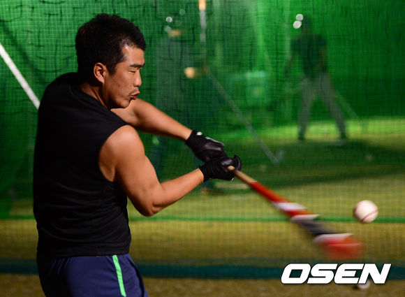25일 오후 일본 오키나와 서든 비치 호텔 야외 훈련장에서 정근우가 배팅 훈련을 하고 있다.