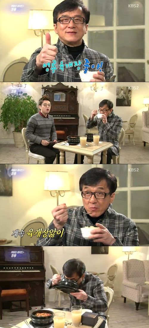 배우 성룡이 게릴라 데이트를 통해 육개장 '먹방'을 보이며 친근함을 보였다.