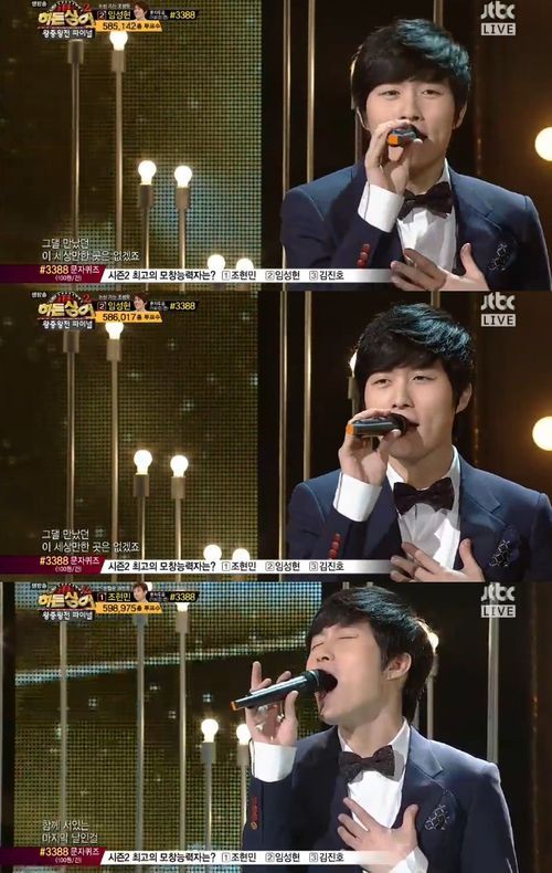 임성현은 통안에서 노래를 부를 때도 판정단을 크게 놀라게 하더니 노래가 절정으로 올랐을 때 더욱 놀라움을 자아냈다. 그간 임성현은 조성모의 노래 중 잔잔한 노래를 선택했지만 이날은 가창력을 선보일 수 있는 '아시나요'를 불러 가창력을 과시했다.