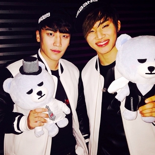 [OSEN=김사라 인턴기자] 빅뱅 멤버 승리가 동료 대성과 함께 곰인형 인증 사진을 찍으며 빅뱅 특유의 카리스마를 과시했다.