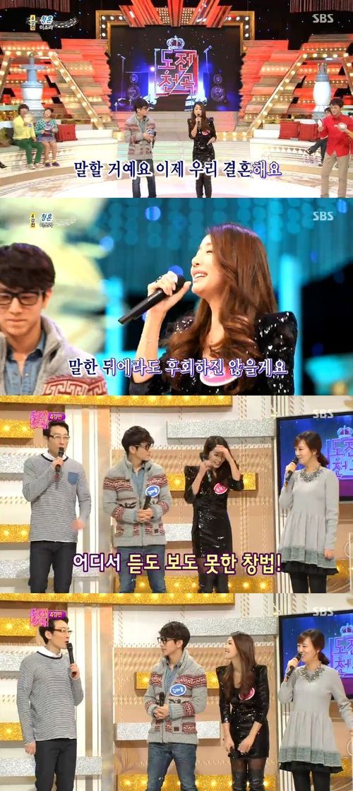오승은은 26일 방송된 SBS 예능 프로그램 ‘도전천곡’에서 칼럼니스트 김태훈과 팀을 이뤄 이소라의 ‘청혼’을 열창했다.