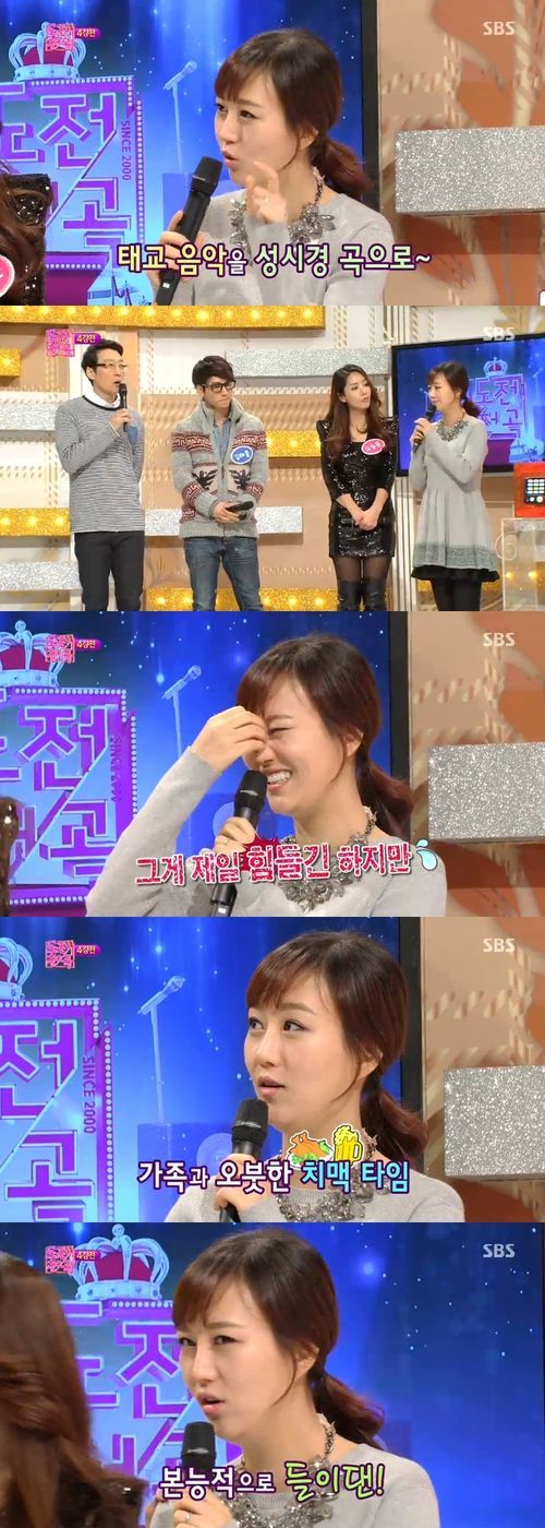 [OSEN=김사라 인턴기자] ‘도전천곡’ MC 장윤정이 임신 중인 요즘의 생활을 재치 있게 설명했다.