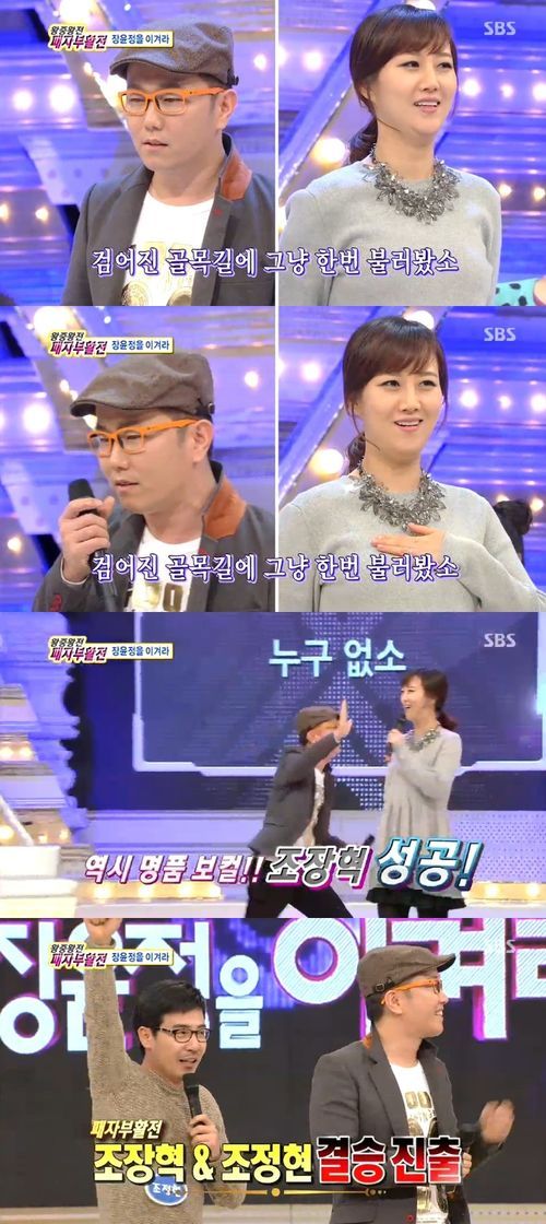 이날 조장혁은 한영애의 ‘누구 없소’를 부르게 됐고, 이에 장윤정이 조장혁과 한 소절씩 노래를 불러, 기대치 못했던 환상의 듀엣이 탄생했다. 명품 보컬 두 사람이 노래를 주고 받자, MC 이휘재는 “보기 힘든 조합”이라며 감탄했고, 다른 출연자들 역시 두 사람에게 환호를 보냈다.