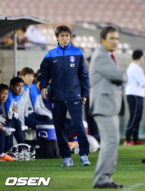 전반 홍명보 감독이 경기를 주시하고 있다.