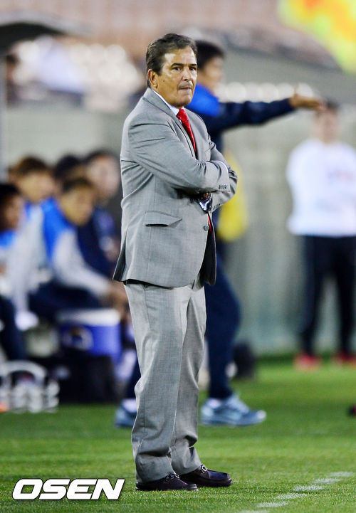 전반 코스타리카의 호르헤 루이스 핀토 감독이 아쉬운 표정을 짓고 있다.