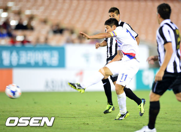 후반 한국 이근호가 중거리 강슛을 날리고 있다.