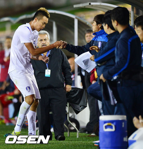 김신욱이 교체되며 코치진들과 악수를 나누고 있다. /spjj@osen.co.kr