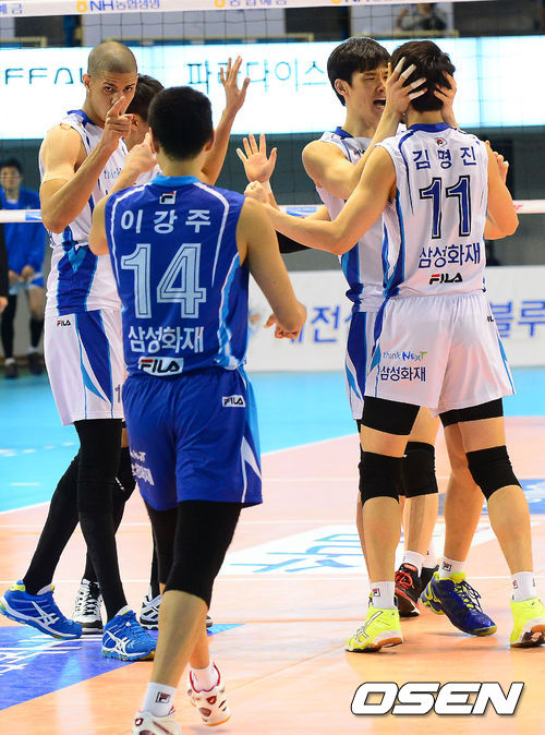 삼성화재는 26일 대전 충무체육관에서 열린 2013-14시즌 NH농협 V리그 남자부 4라운드 경기에서 우리카드를 세트스코어 3-1(25-12, 19-25, 25-18, 25-18)으로 이겼다.