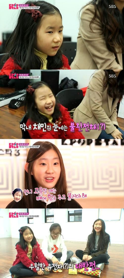 언니들의 연습하는 모습을 본 채민양은 대뜸 “춤이 이상하다”고 말 해 웃음을 자아냈다. 인터뷰에서 자매는 “막내 채민이 가르쳐줬다”며, “고음을 할 때 배에 힘을 줘야 한다”고 가르쳐줬다고 설명했다.